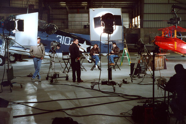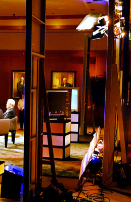 | For the Hewlett Packard product launch(pictured below), we lit an entire airplane hanger with our 5-ton HMI package. The program was then satelitte cast to Hewlett Packard branch offices around the world. Call us for competitive pricing on corporate communications projects of any size. |